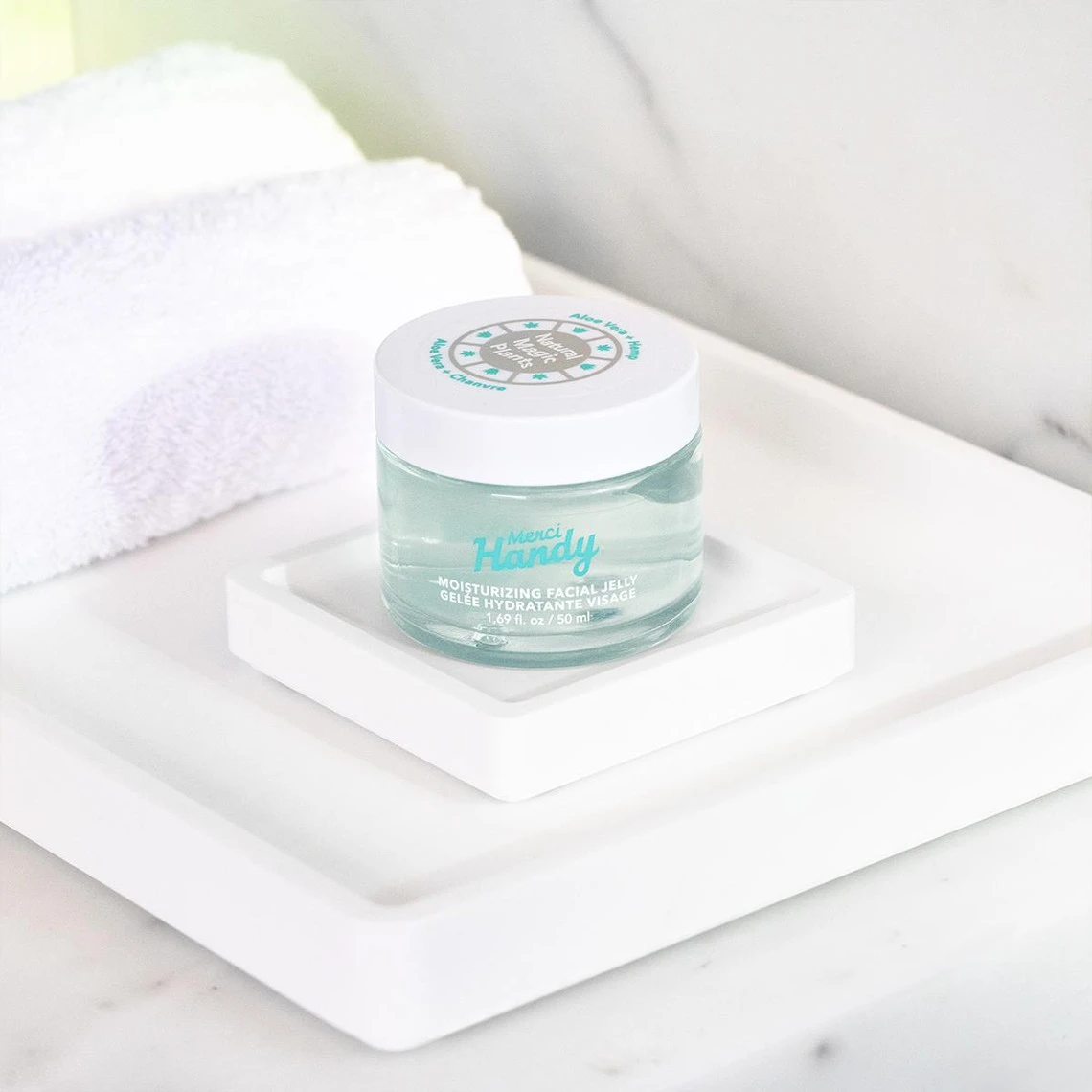 Tel un nuage de fraicheur, la Gelée Visage Hydratante 50ml de la marque Merci Handy prend soin de la peau chaque jour. Sa texture légère, douce et non grasse, adaptée pour tous les types de peau, procure une sensation exquise de fraicheur à l’application et tout au long de la journée – de la nuit.