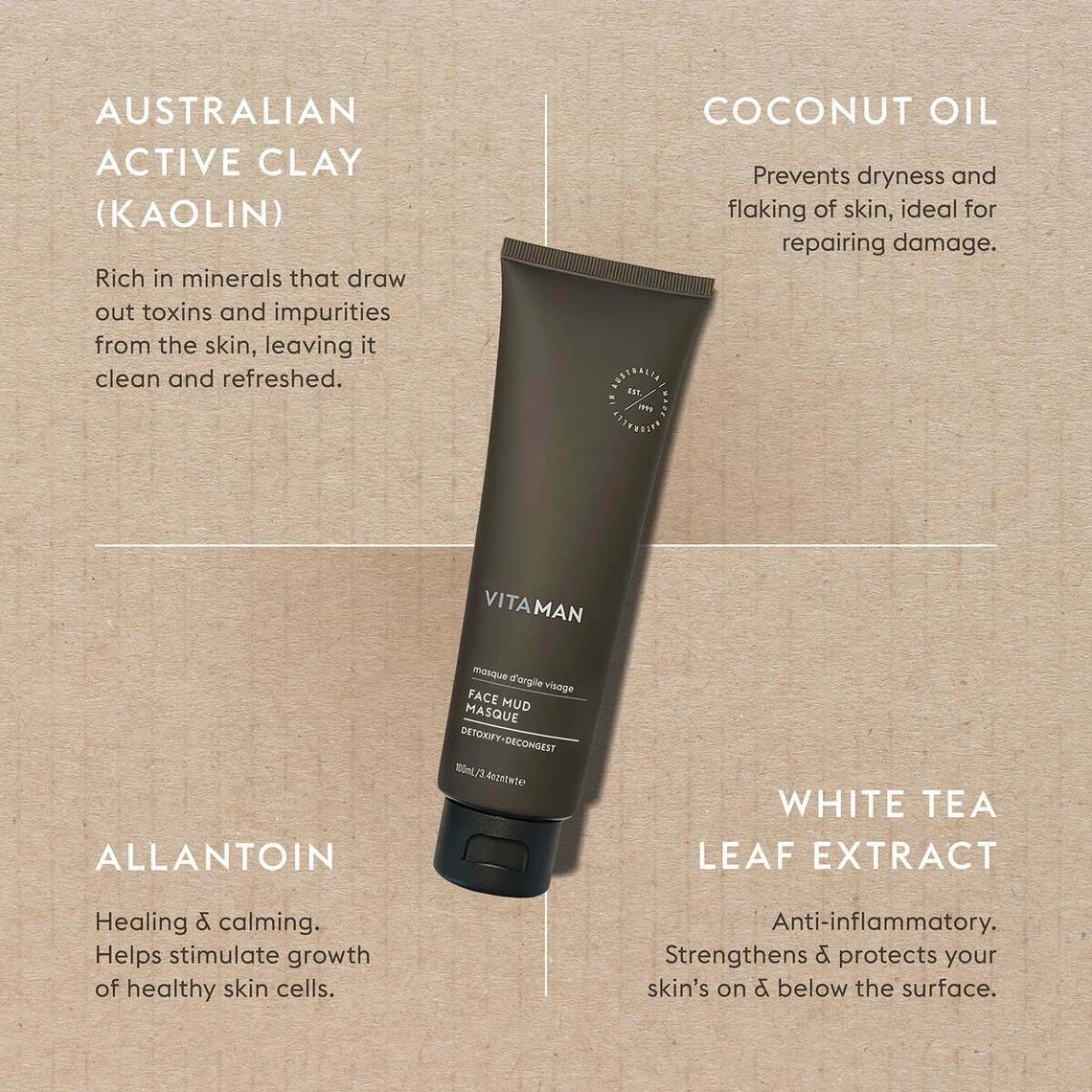 Le MASQUE Á L’ARGILE VISAGE de la marque australienne VITAMAN permet d’éliminer les petites imperfections en respectant l’équilibre de la peau.